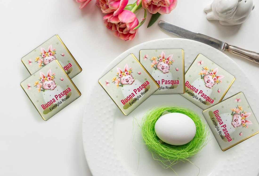 Una Pasqua dolce con tanti cioccolatini! Cioccolatini personalizzati, con frasi e immagini a scelta per arricchire la tavola della festa o da regalare ad amici e parenti! Un regalo pensato per ogni persona per rendere ancora più bella la Pasqua!